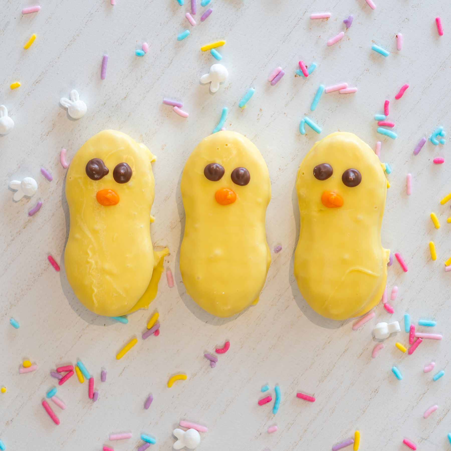 Pack of three (3) Nutter Butters dipped in white chocolate.