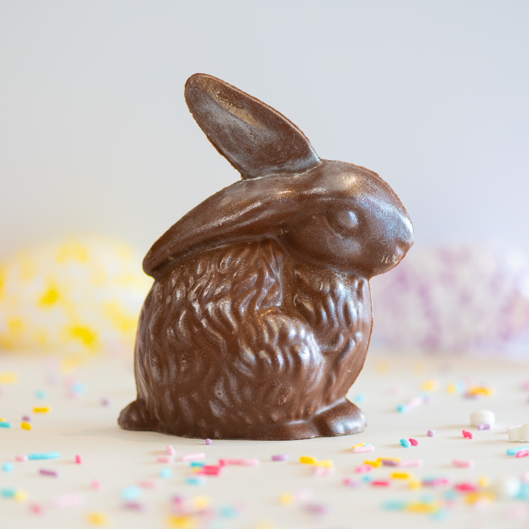 What would Easter be without this classic favorite in their basket? Sculpted in rich milk or dark chocolate, beautifully-detailed solid Chocolate Bunny stands about 5 inches tall.
